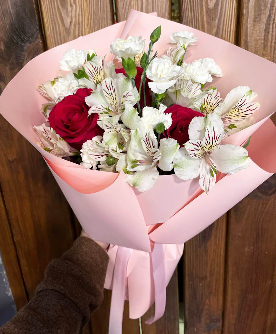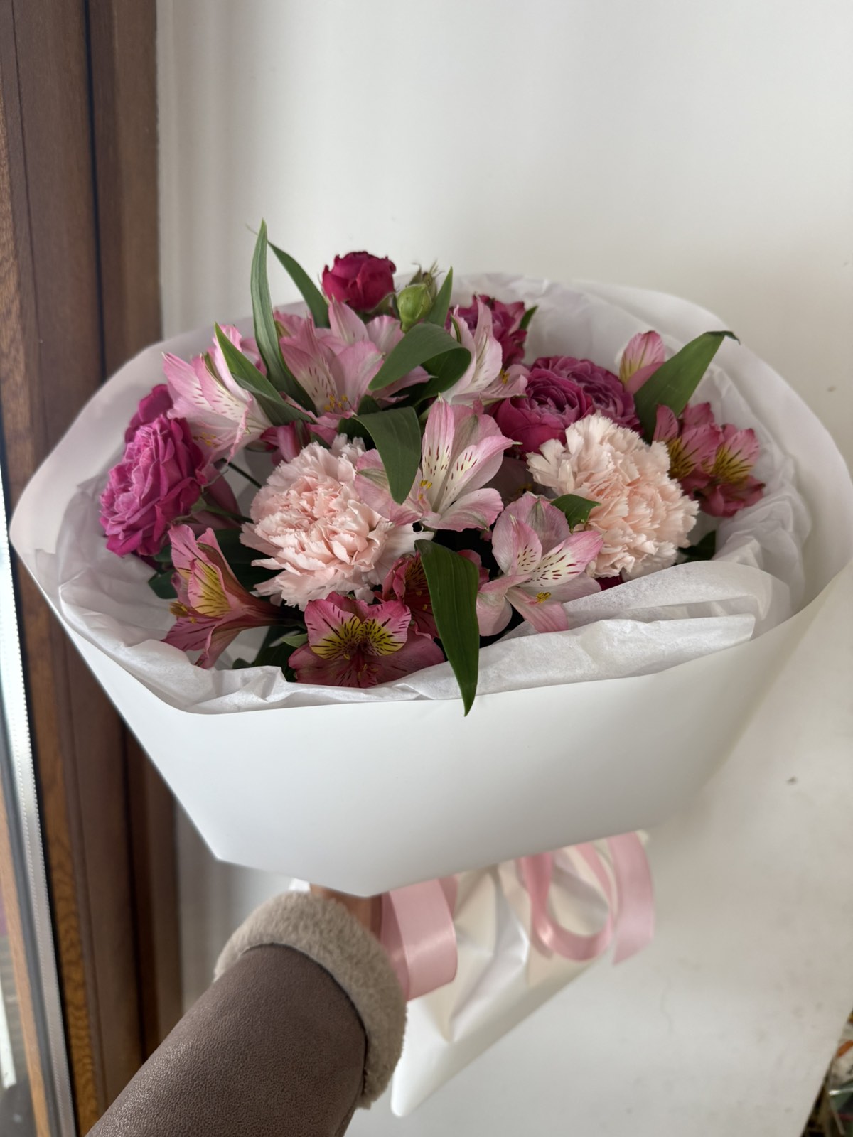 Если в момент получения вашего заказа у нас не окажется в наличии каких-то цветов из перечисленных, мы их заменим на другие такого же цвета и отличного качества! Букет может оказаться еще красивее с нашими заменами!