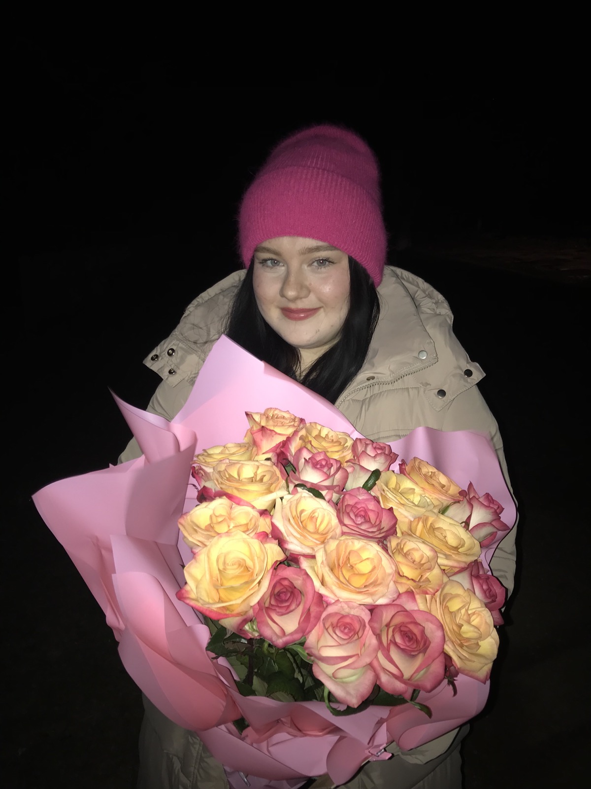 Обратите внимание, что существует много сортов розовых роз, и каждый сорт имеет определенный оттенок от светло-розового до яркого темного, близкого к малиновому. Поскольку мы никогда не знаем, какие сорта будут доступны в день поступления вашего заказа, мы будем использовать розы, которые наш флорист-дизайнер выберет как наиболее подходящие для этого букета. Пример букета с розовыми розами другого тона смотрите на нашем дополнительном фото.