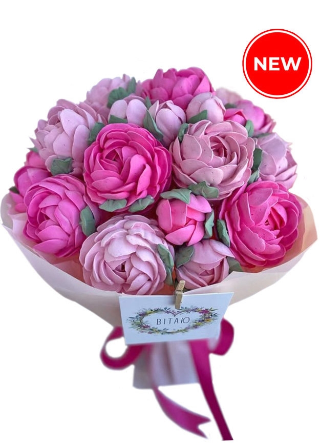 Этот роскошный букет пионов сделан мастером из зефира, во что даже верится с трудом! Настолько он ярок и красив. Есть такие мастера в Украине, которые делают настоящие шедевры из зефира! Bаши близкие получат букет, выполненный одними из лучших мастеров страны! А, налюбовавшись на его красоту, его можно... съесть.