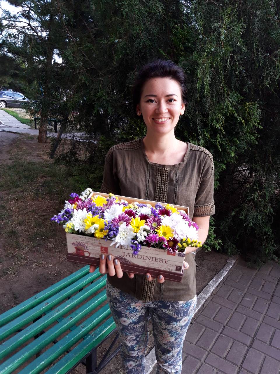 Chrysanthemums - the flowers which are long time fresh amd live and colorful. These chrysanthemums are set in a special oasis that keeps them fresh keep their owner in good mood. Ferrero..? They will disappear much earlier:)