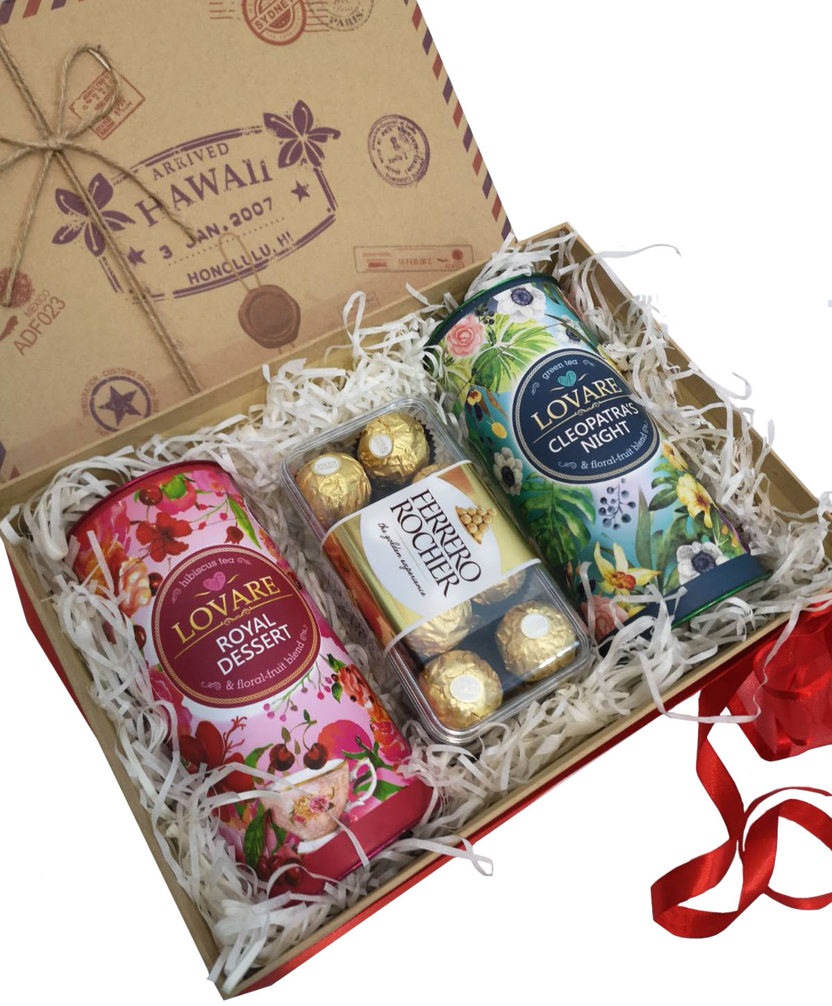 This set includes a very popular LOVARE tea with different tastes and a box of Ferrero Rocher (200 grams).