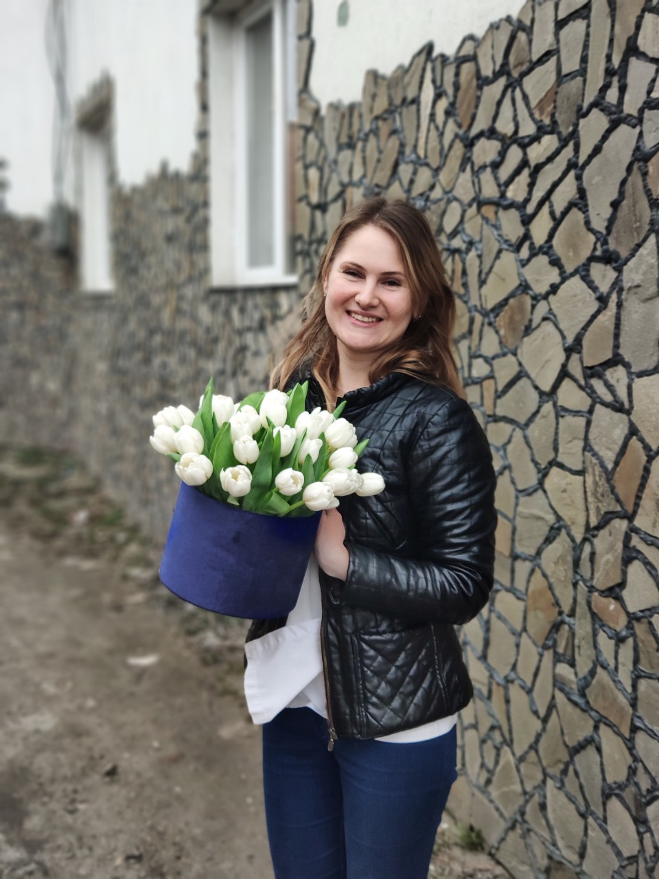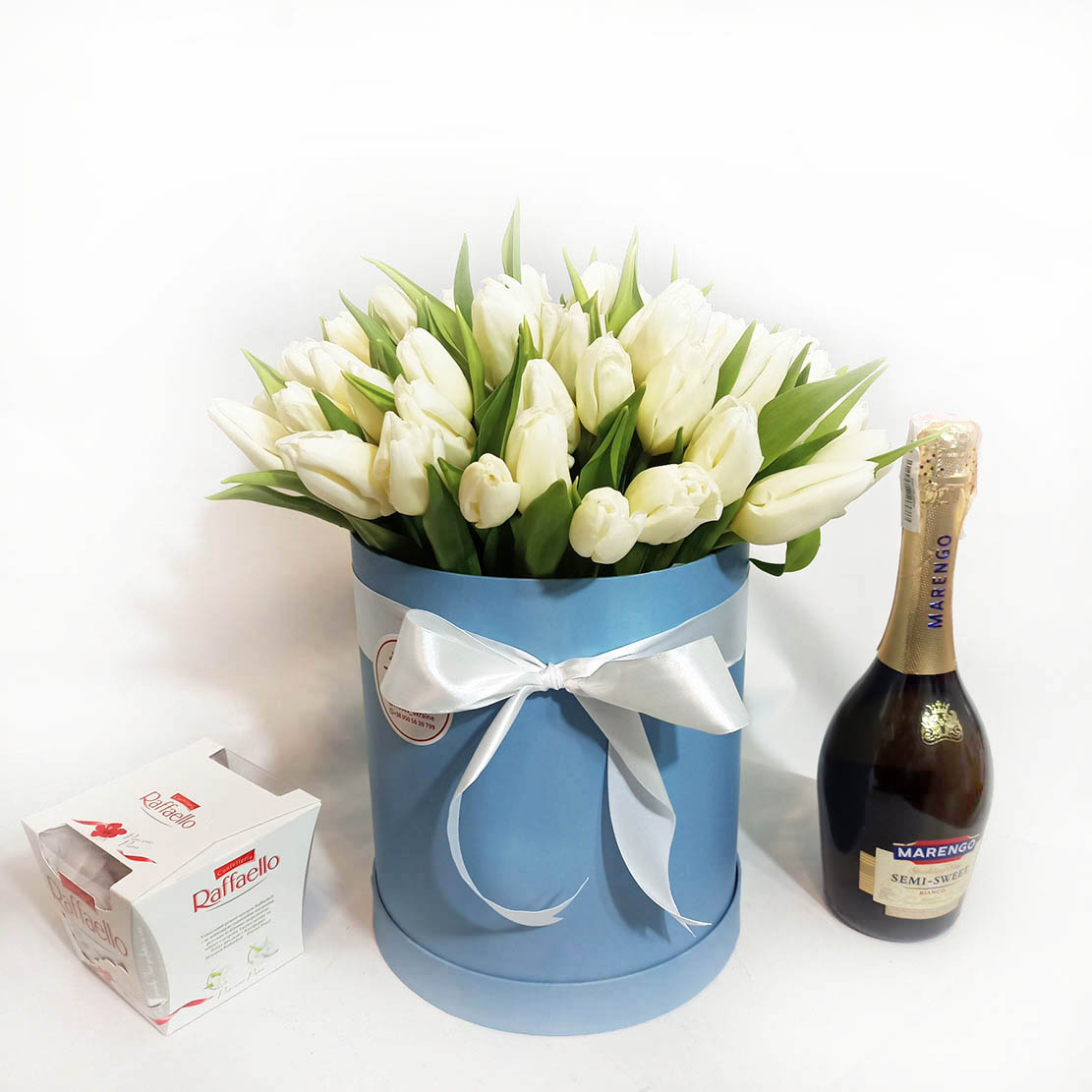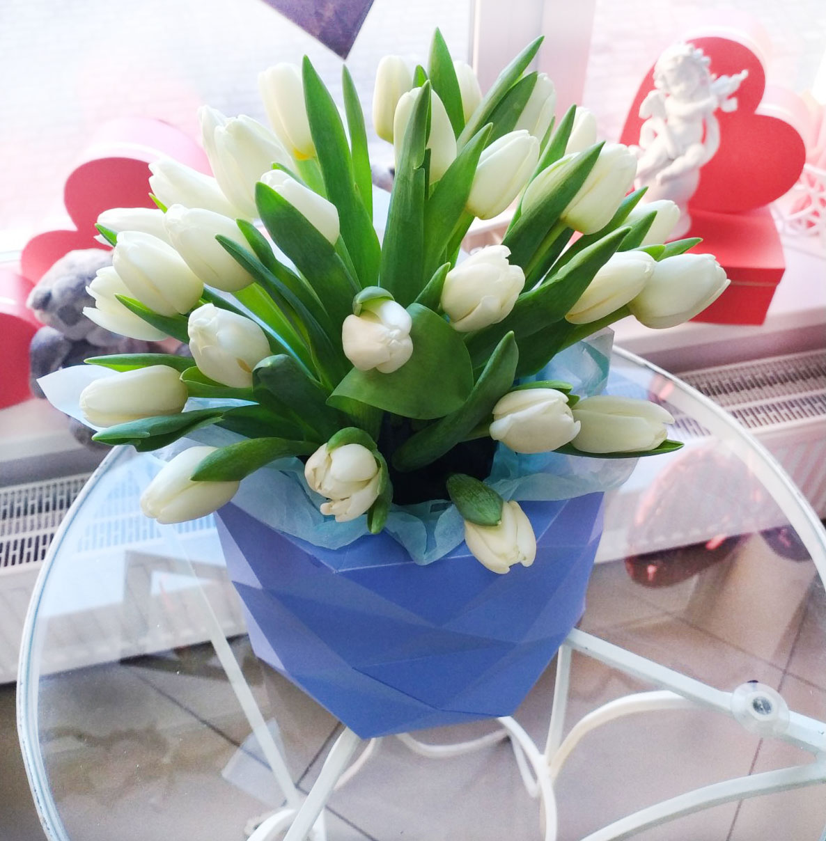 IMPORTANT: Such arrangement is available apprx from January-February to March-April - at the tulips blossoming season.