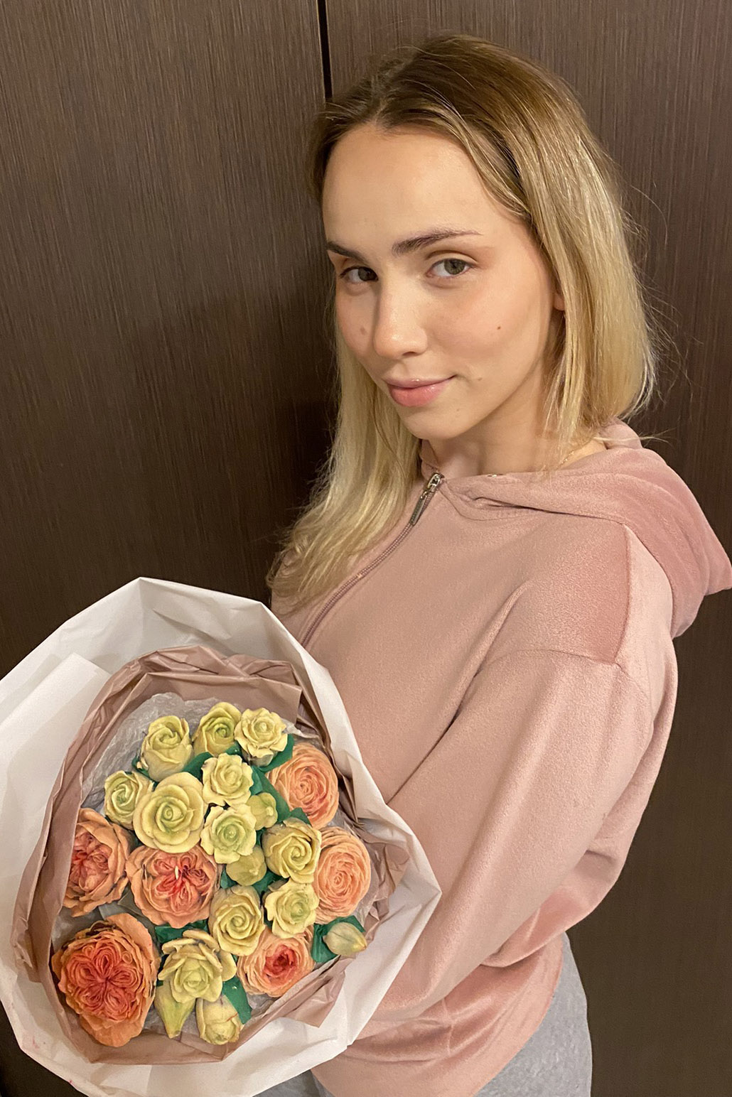 Шоколаддя працює у майстерні та відправить букет поштою на наш магазин для доставки. Звісно, такий подарунок має бути абсолютно свіжим, а це означає, що ваш букет буде виготовлений відразу після отримання замовлення. Після цього його буде відправлено поштою нам для доставки. Тому, будь ласка, дайте нам як мінімум 4-5 днів на всі ці етапи і оформіть замовлення за 4-5 днів до дати доставки.