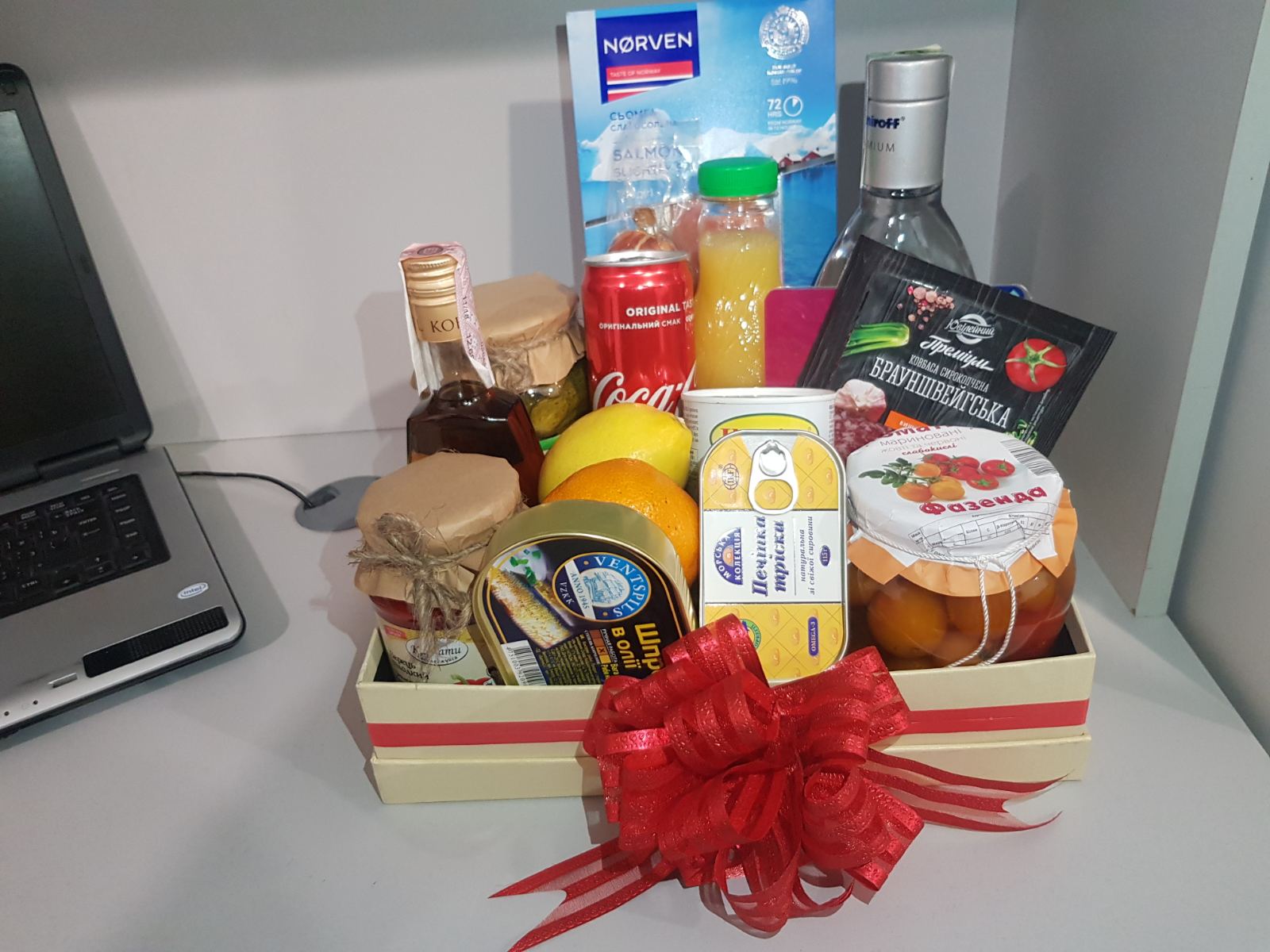 2) Ми не можемо гарантувати наявність усіх згаданих складових цього набору в навколишніх магазинах в даний момент. У цих випадках ми замінюємо деякі продукти на інші - подібні за вартістю, але не нижче рівня якості, ніж заявлені. Такі заміни не можуть бути більше, ніж 15-20% від загального складу подарунка. Безумовно, ми гарантуємо високу якість усіх складових цього набору.