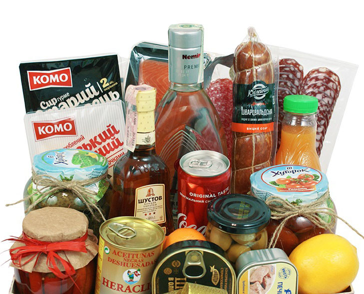Цей кошик делікатесів включає все, що необхідно для святкового столу, будь то день народження, ювілей, Новий рік, Різдво, Великдень ....