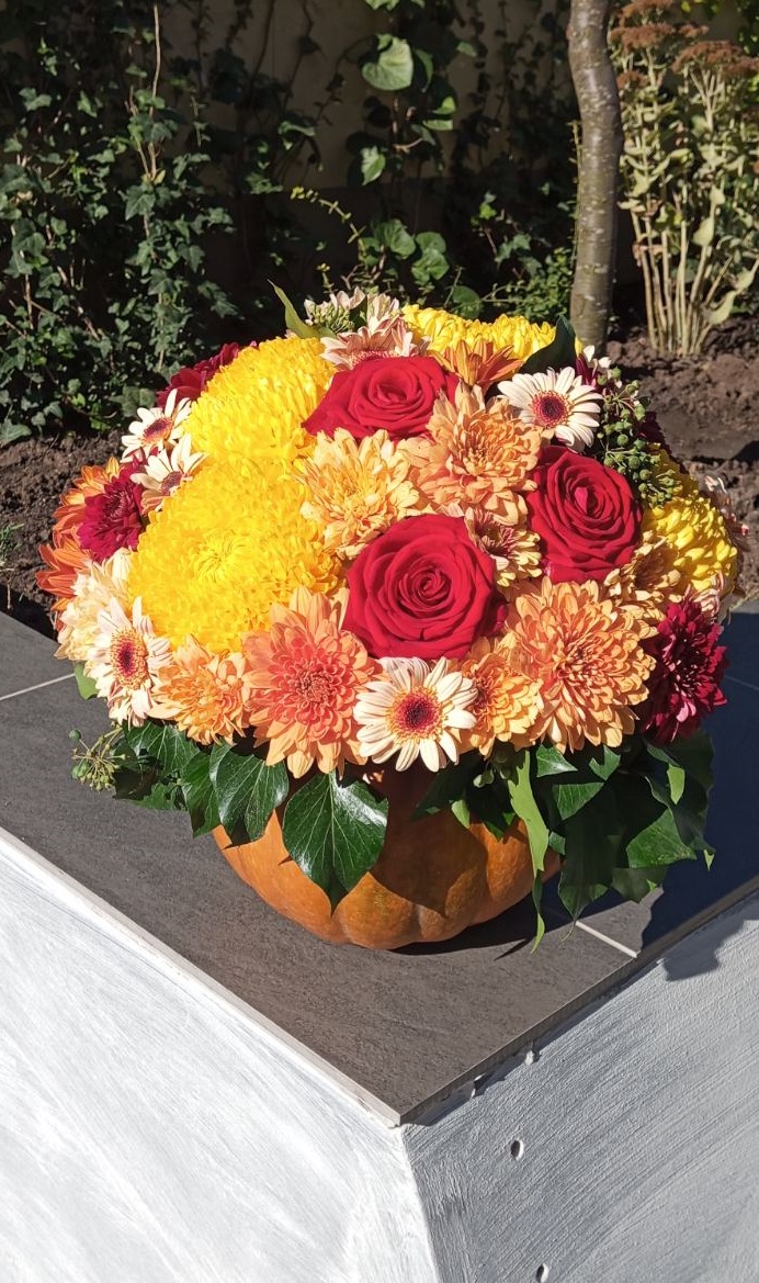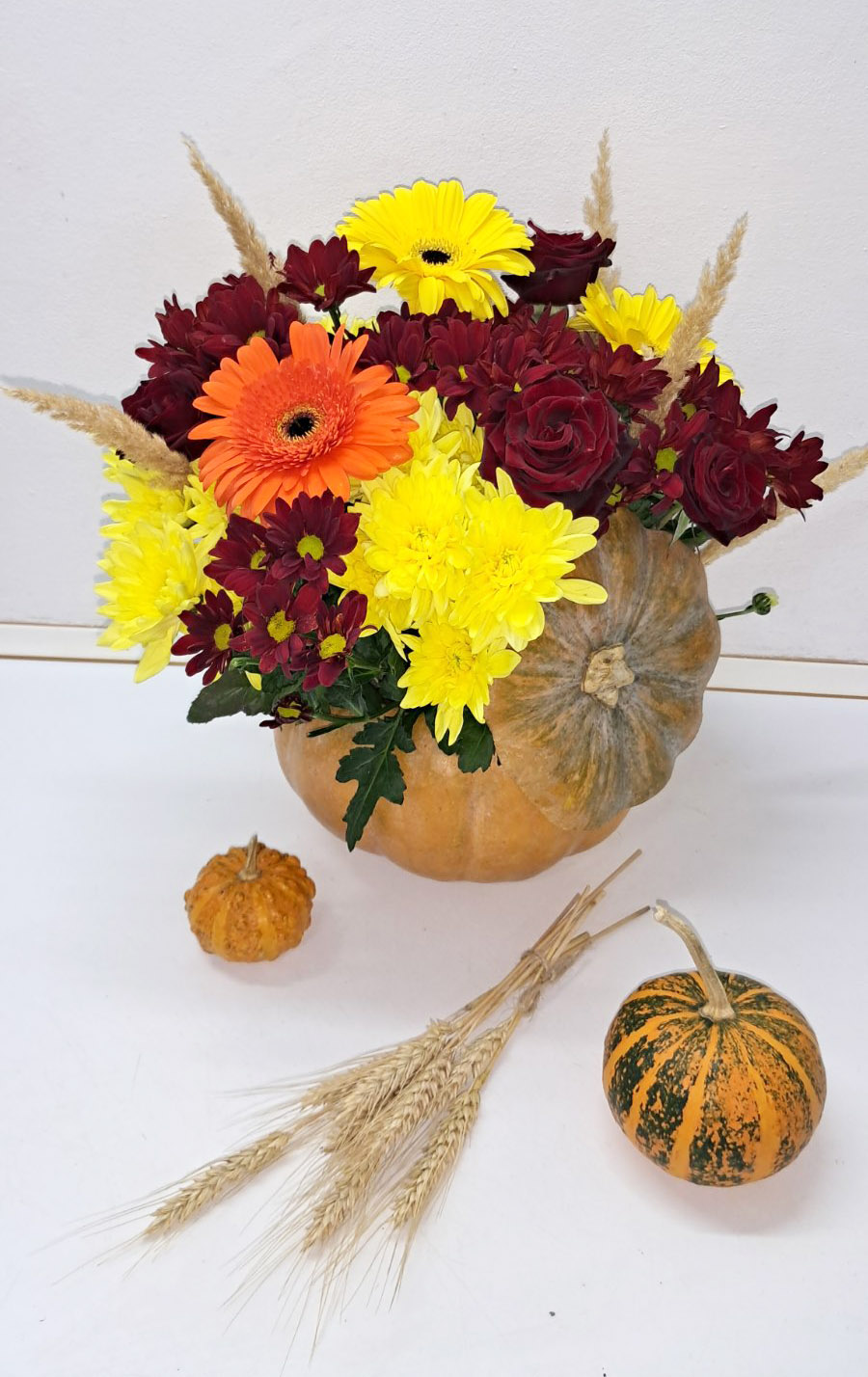 Такі композиції, вазою для яких служить справжня гарбуз, досить нові й незвичні для України. Тому одержувачі такого подарунка незмінно бувають здивовані і захоплені.