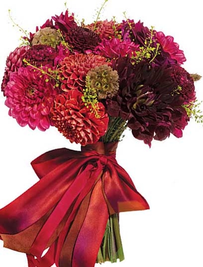 Цей букет складений з жоржин самих різних темних та глибоких відтінків: темно-рожевих, червоних, бордо, фiолет ...