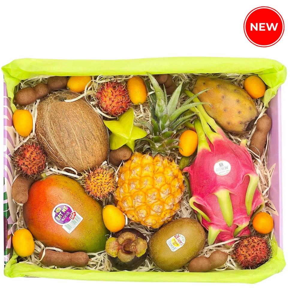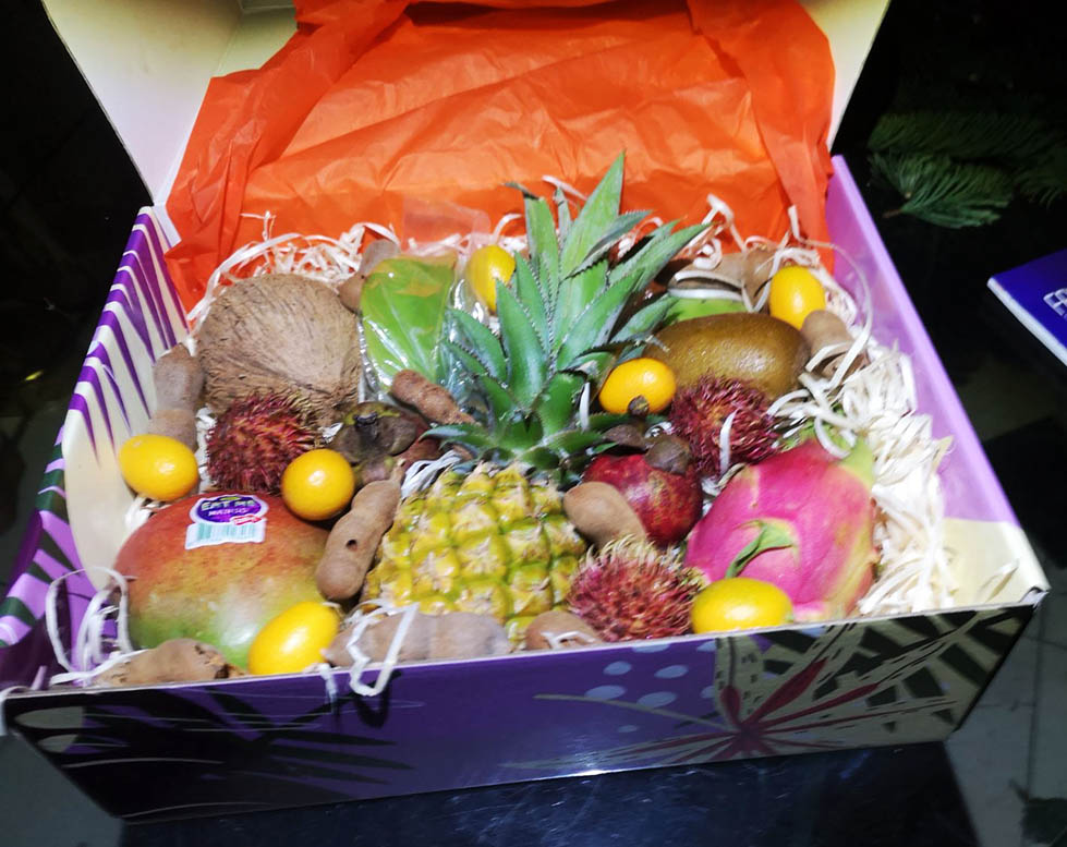 У нашій подарунковій коробці містяться такі види екзотичних фруктів: