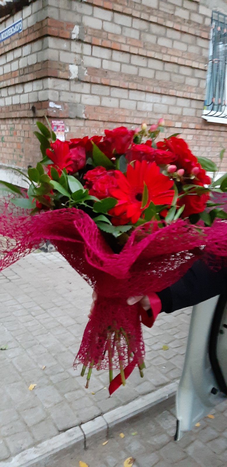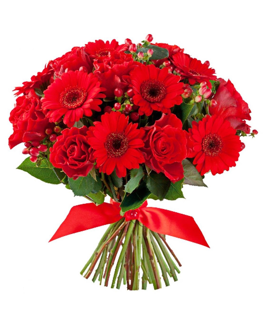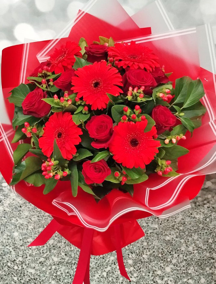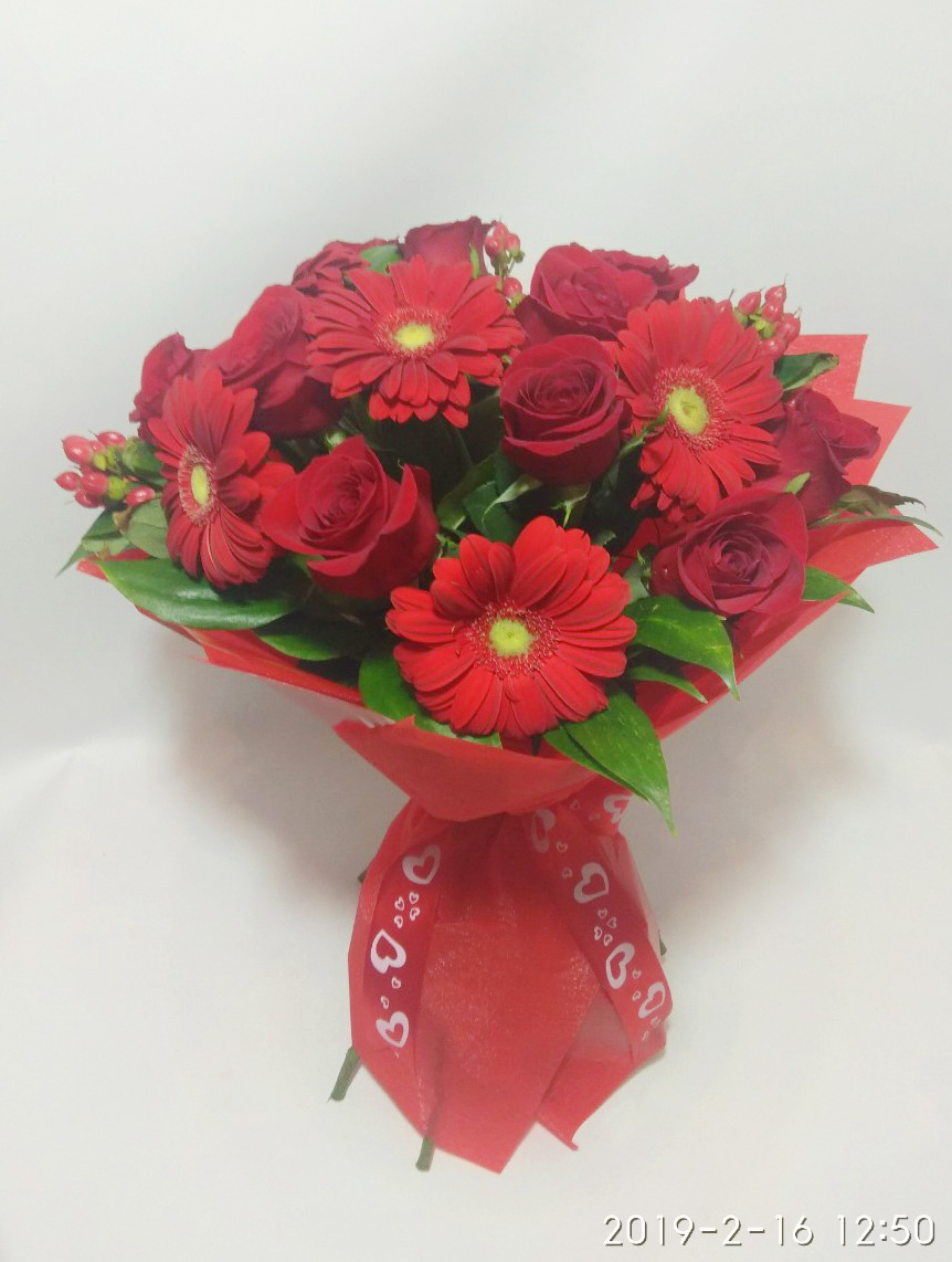 Яскравий, насичено червоний букет зігріє та зробить Ваш день яскравішим...де б Ви небули та при любій нагоді...