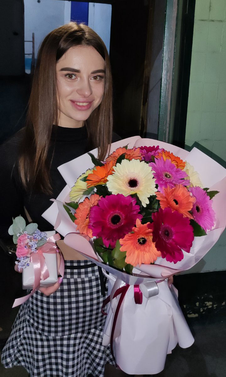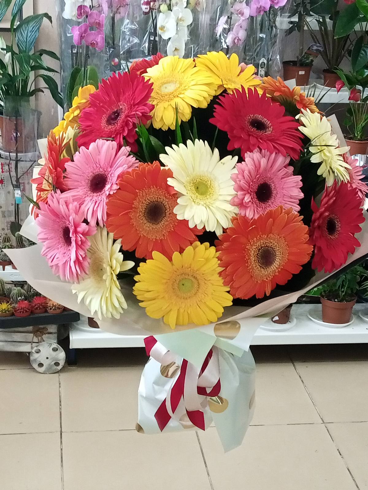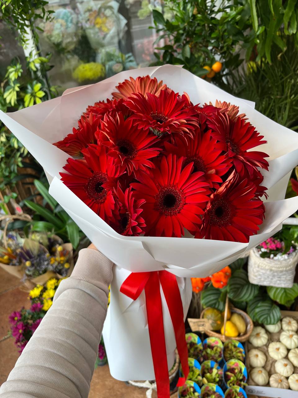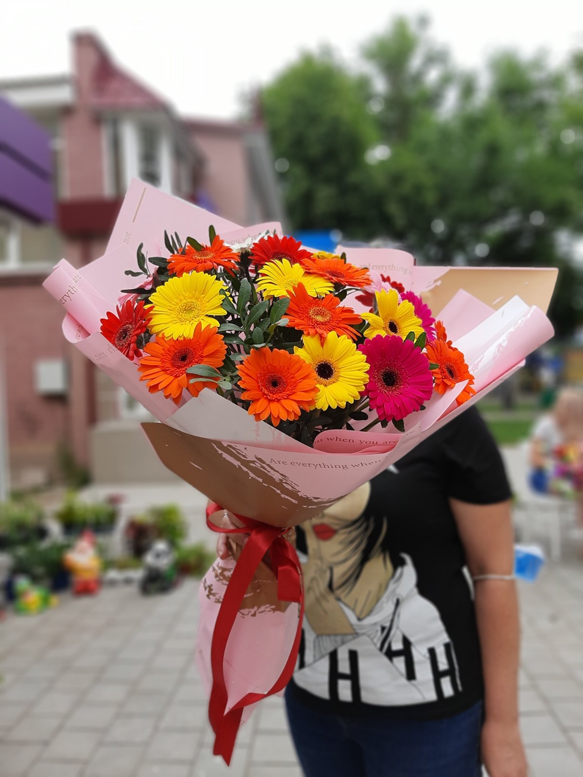 На нашому фото представлений букет з 25 гербер, але ви можете вибрати і іншу їхню кількість.