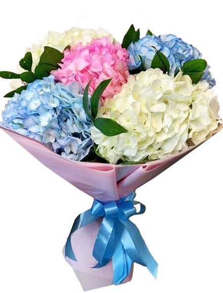 Букет з 5 гортензій рiзного кольору
