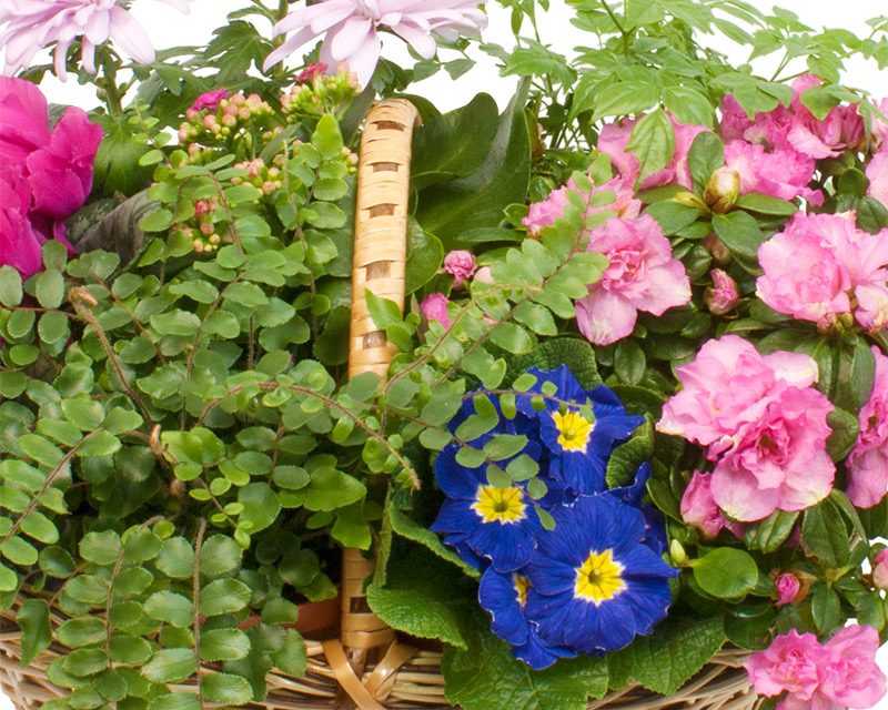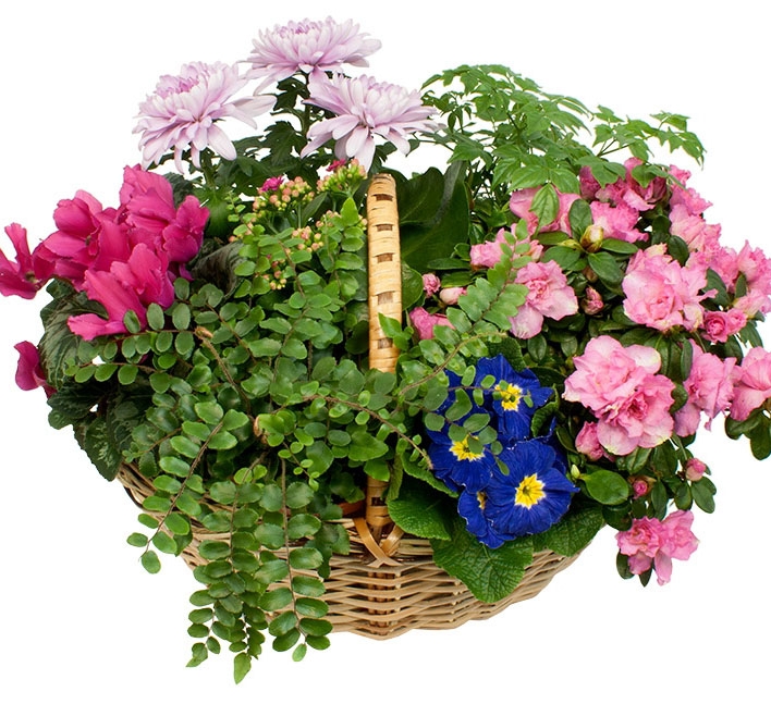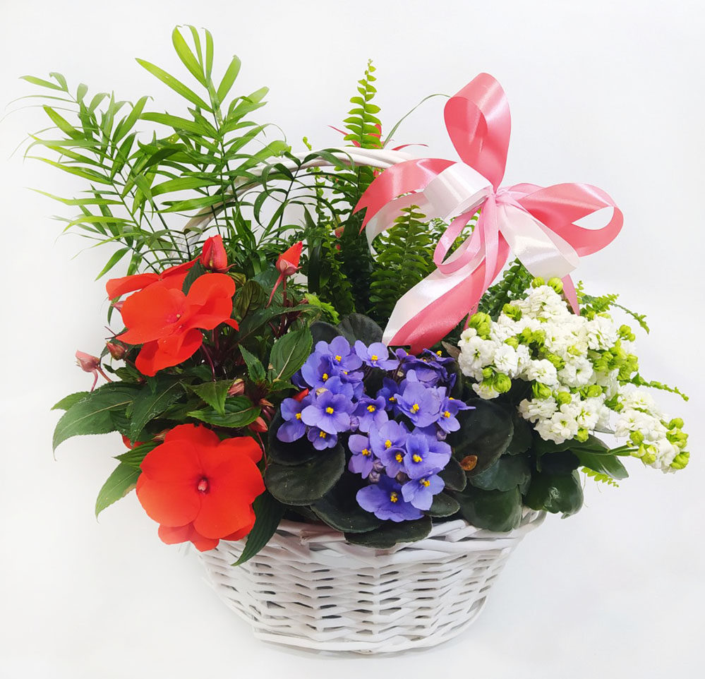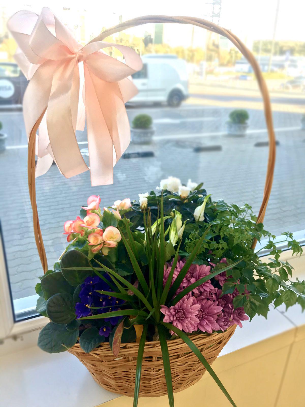 У кошику 4 квітучих рослини і 3 декоративно-листяних.