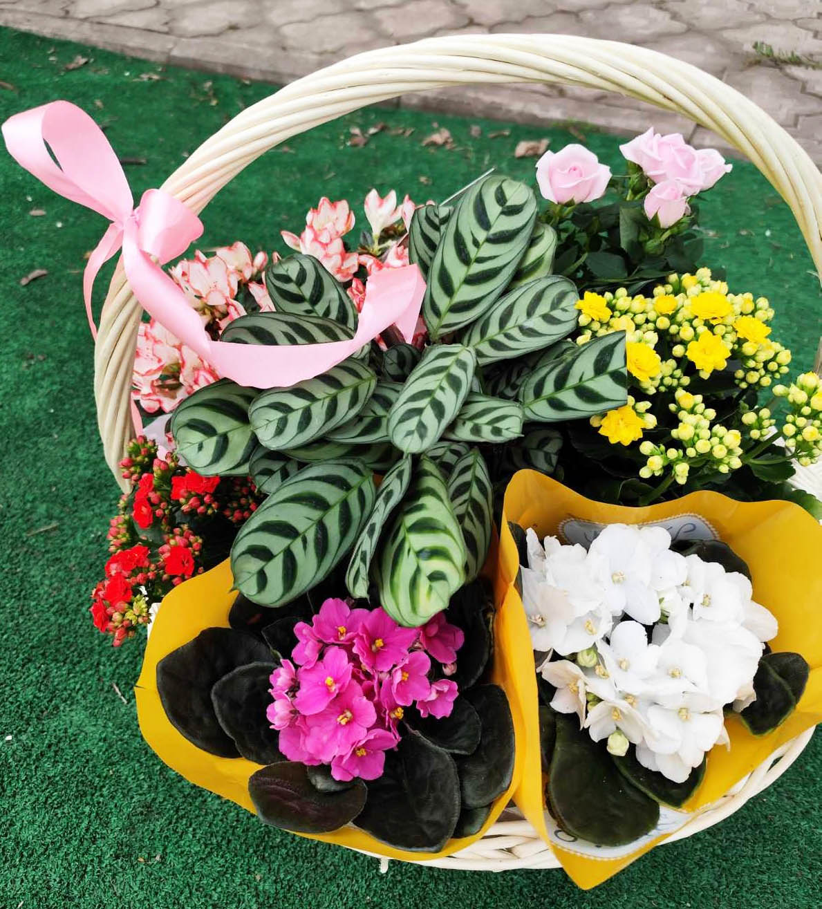 Живі рослини ., кожне в своєму горщику, укладені в плетений кошик. Ці будуть жити довго та радуватимуть хазяйку ще багато років. Ось таким "довгограючим" може стати ваш дарунок!