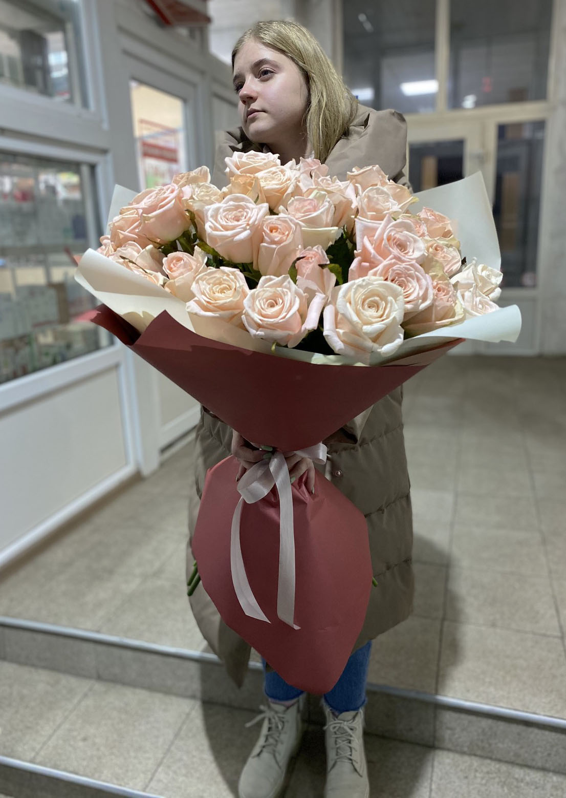 Фото наших одержувачів квітів і подарунків - Класичні Персикові Троянди, від 7 до 101