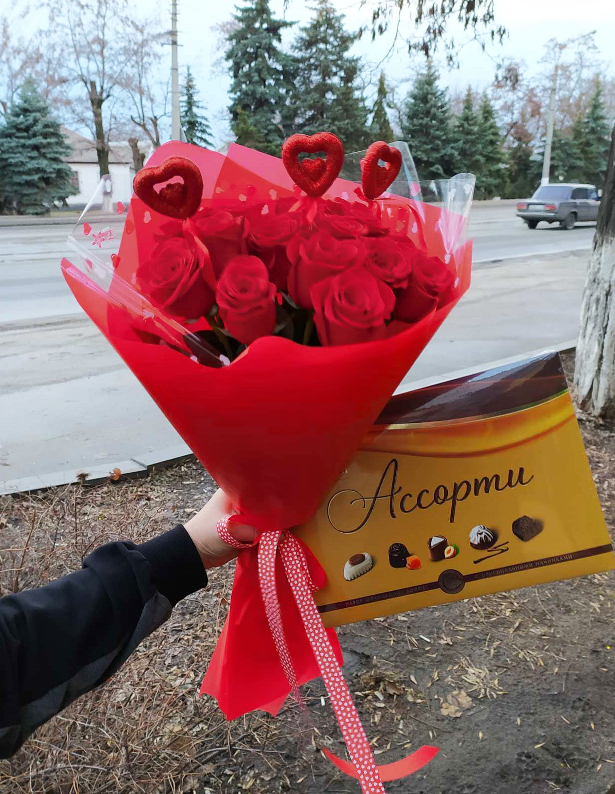 ATTENTION, pls! Special hearts for bouquets might be unavailable at some periods at our flowers shop. At such case we'll add any other heart as substitution, for example: heart shaped balloon, or chocolate heart, etc.